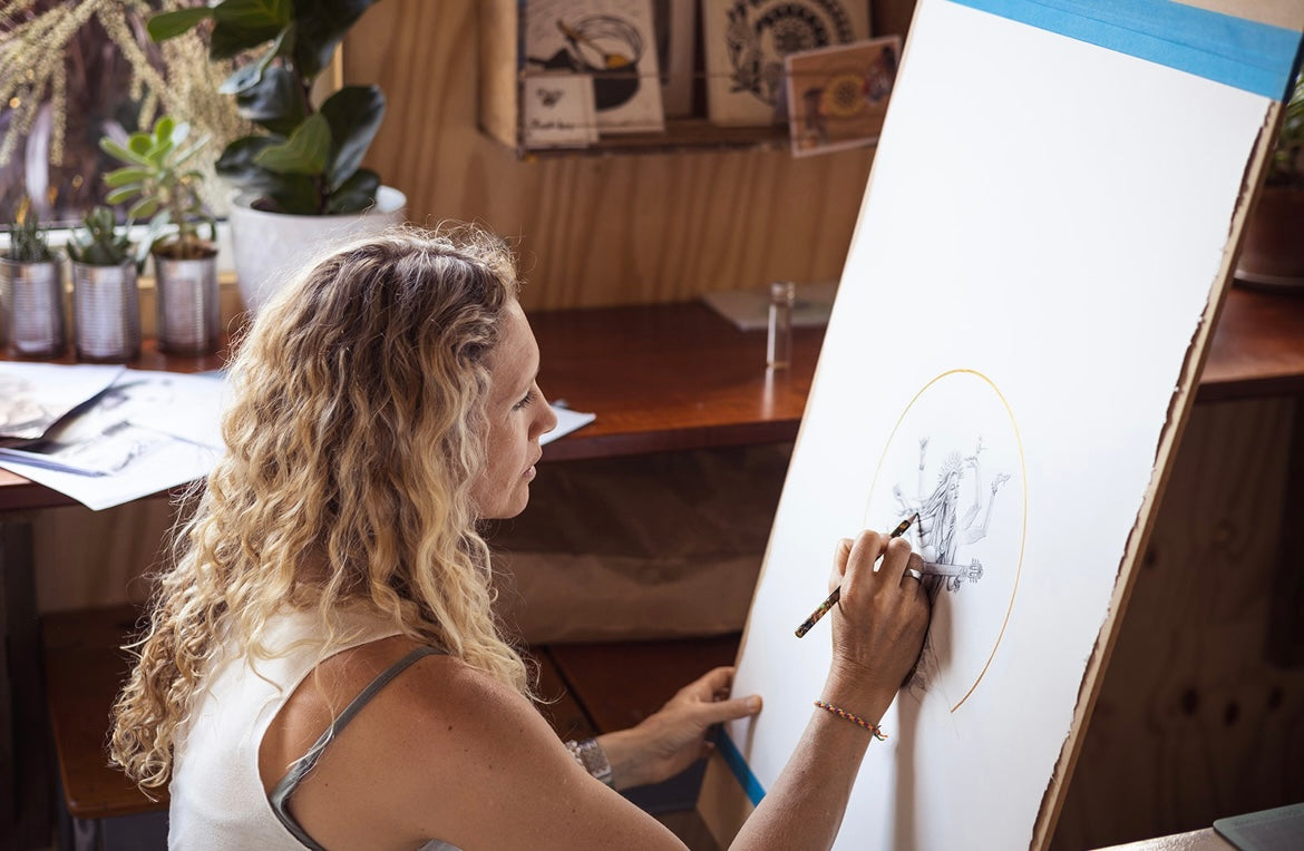 Nancy studied at Adelaide Central School of Art at age 17 where she nurtured her artistic skills and fell in love with the human form. She has many passions that are evident in her work which include the ocean, surfing, nature; especially birds, music and her love of motherhood. Nancy has made jewellery, sewn bags and rugs, she loves drawing and painting along with creating custom designs fit for apparel. This is her store that has all of her creations for sale!