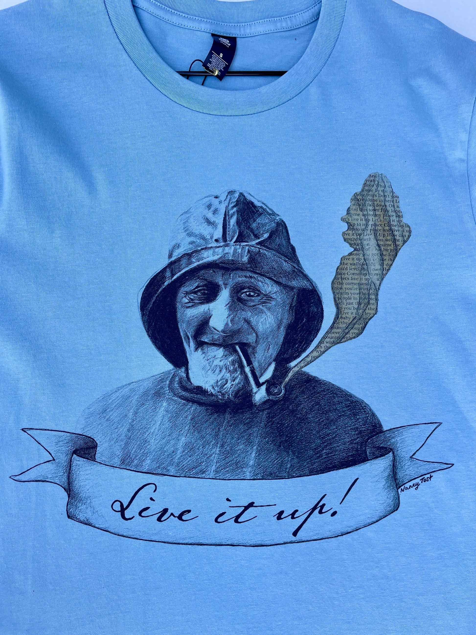 Live it Up is an old salty sea dog that is a true hero of his time. A man of the sea who lived a life rescuing others from drowning, in treacherous conditions. He is as authentic as it gets and is someone I'd like to have a yarn to over a cold one. Live it up became his banner as the original commission, that fell though due to covid, was for a Surf Shop that is dear to me and Live it Up was their slogan penned by Taj Burrow. A phrase we know well, here in WA.