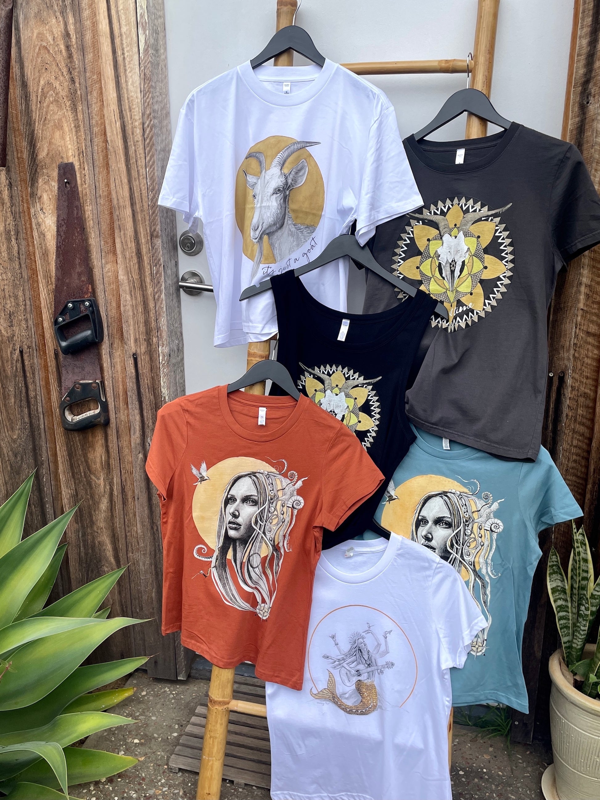 This is a wider shorter (not cropped) t-shirt that is very comfortable and easy to wear. Great for all body types especially bigger cupped ladies as there is more room around the chest. Black and white available in this style t-shirt. For best results gentle cold machine wash inside out (no concentrate detergents).