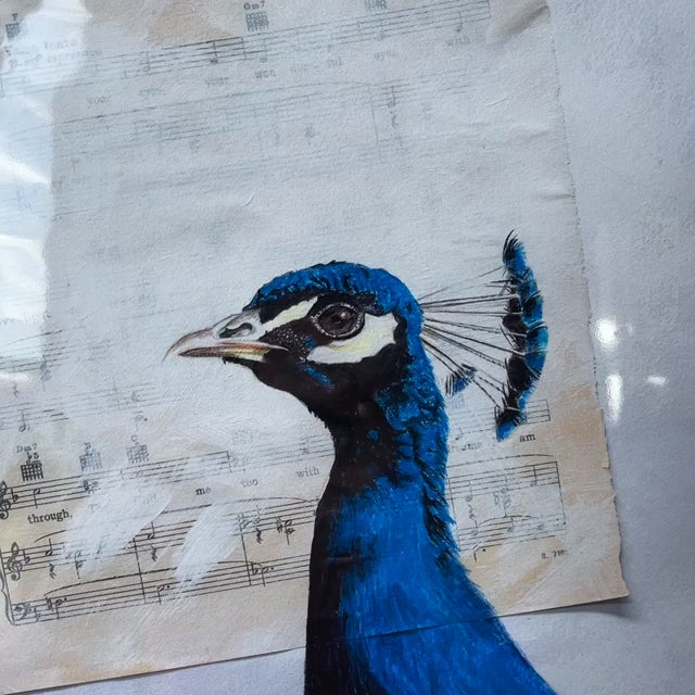 This is a Giclee print of the original artwork by Nancy Tost. This series of artwork is based on the song of nature and how we interact with it. Birds are natures song and so the music sheet relates to the wonderous sounds of what we often take for granted.